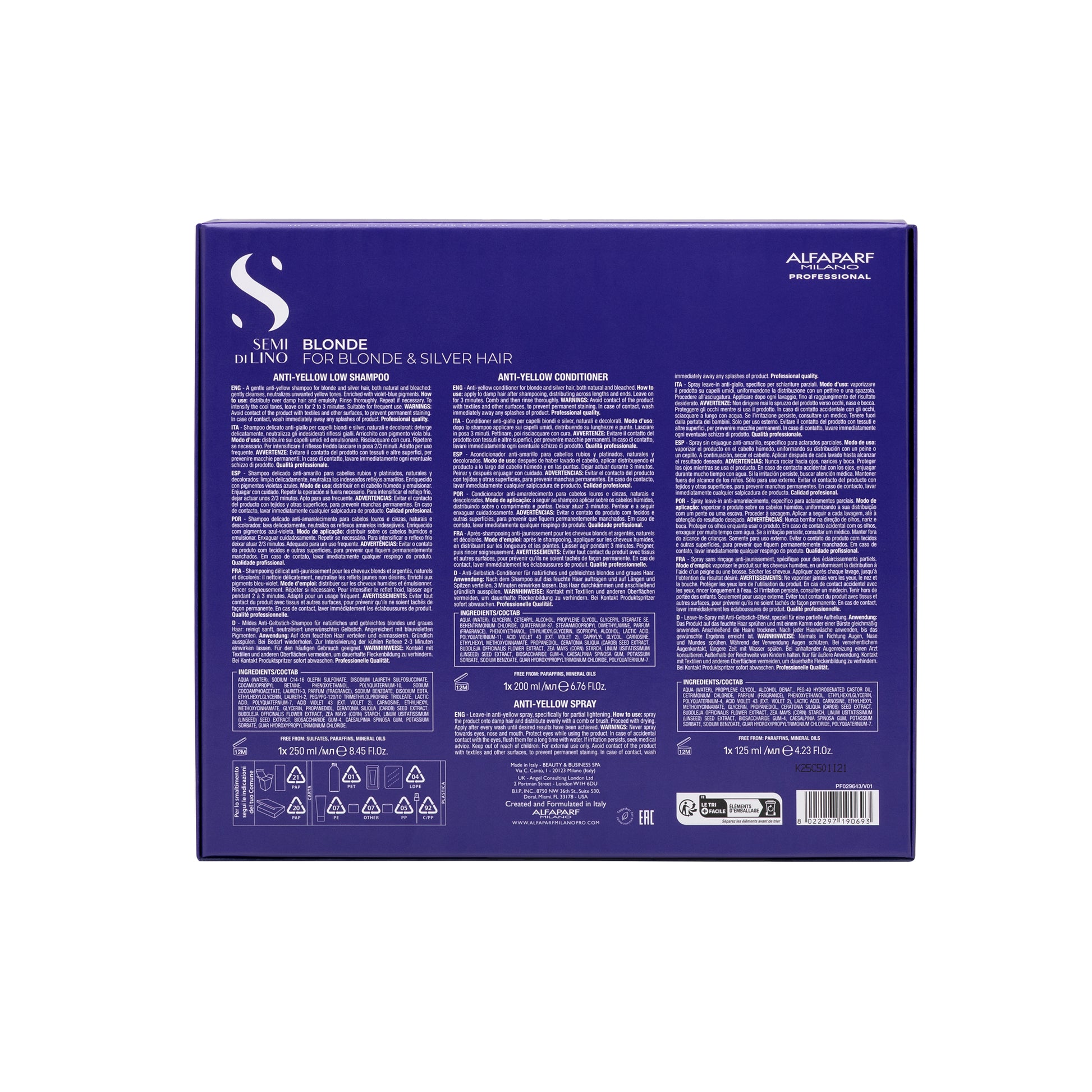 Semi di Lino Holiday Set Blonde / Per capelli biondi e silver - Anti-Yellow Low Shampoo + Anti-Yellow Conditioner + Anti-Yellow Spray